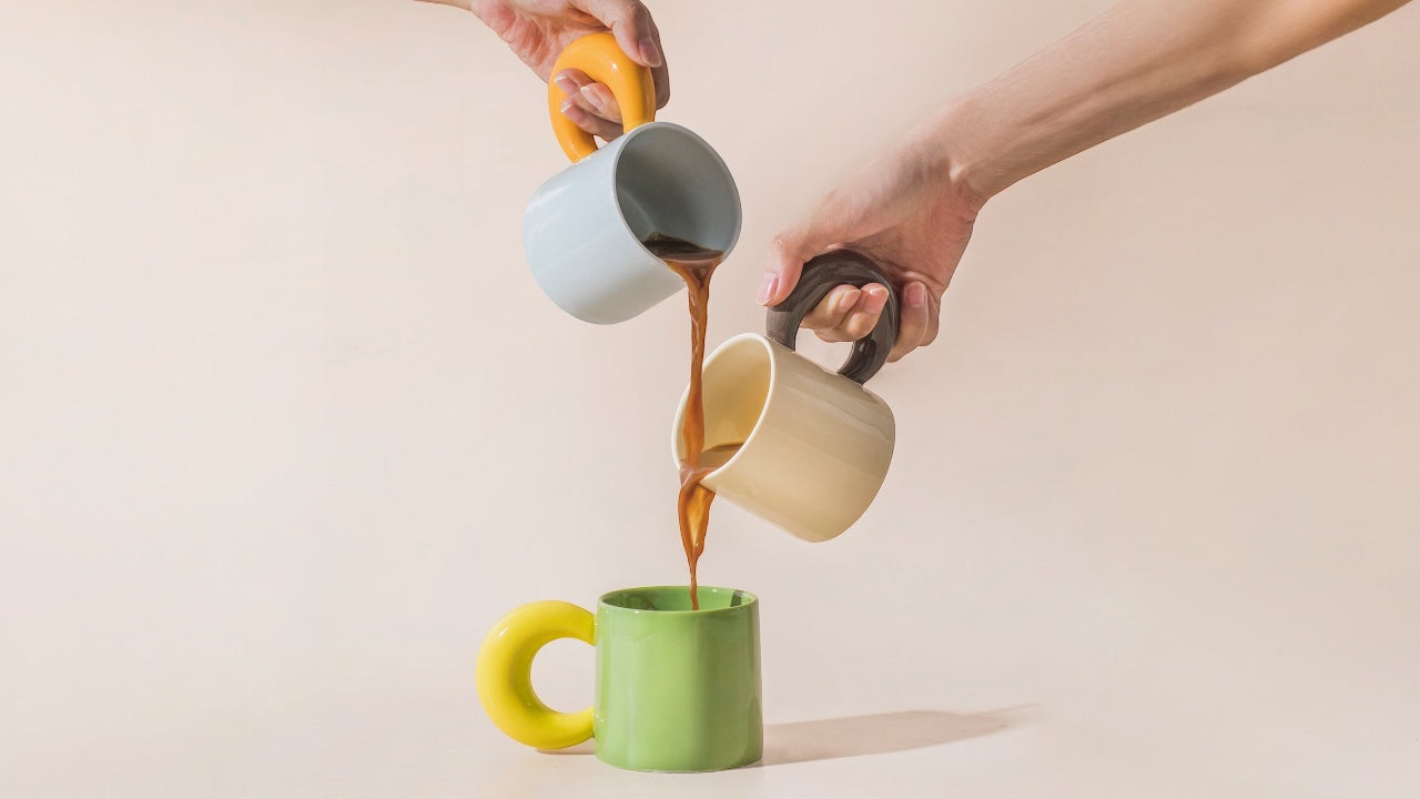 Our color-blocked ceramic mugs are bold, fun, and full of attitude—just like your coffee.
