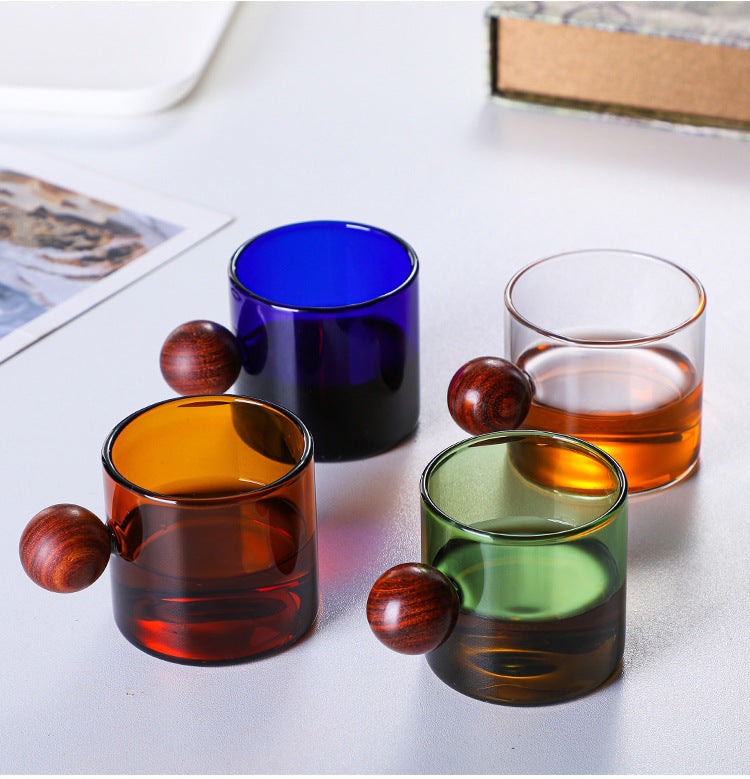 Experience the perfect blend of style and functionality with this hand-blown, high borosilicate glass cup. With its heat-resistant properties, microwave and dishwasher safety, elegant retro design, and ergonomic sandalwood handle, this 120ml cup is ideal for both hot and cold beverages. Its transparent and colorful design adds visual charm to your tea or coffee rituals while ensuring a comfortable hold and durable build.